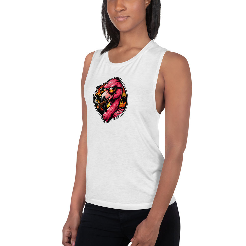 Finished with a curved hem and breathable fabric, this tank brings Flamingo Syndicate energy to warmer days and active moments. It’s the piece Rico throws on when comfort matters—but presence still counts.