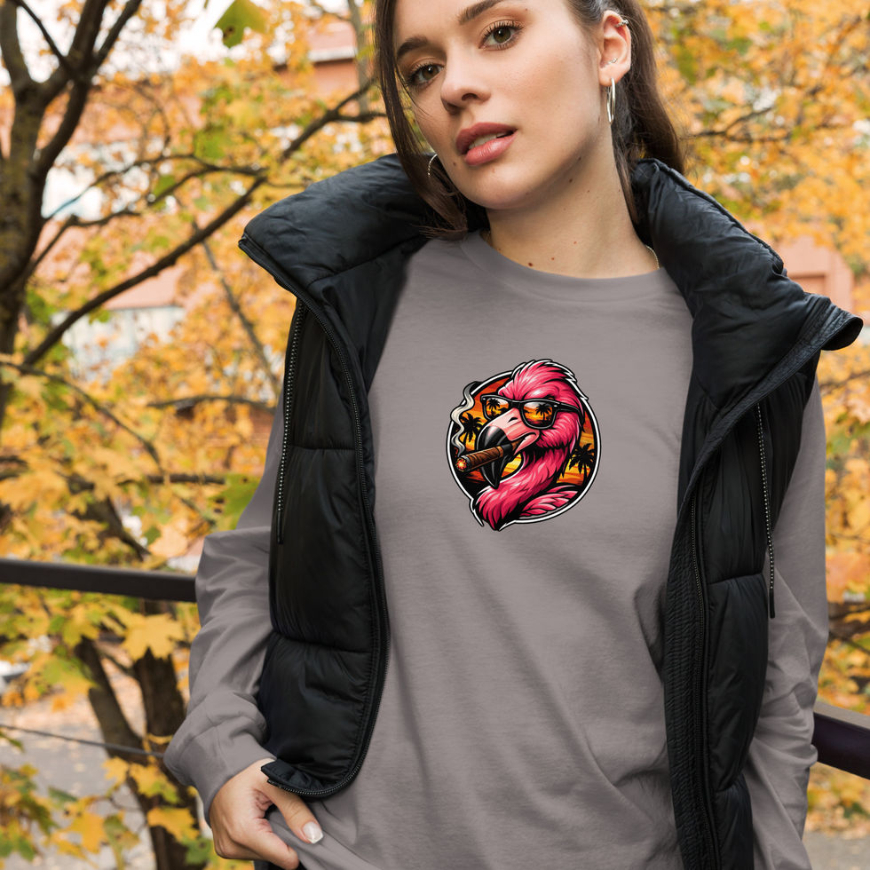 This Flamingo Syndicate long sleeve is built for that in-between weather and all-day movement: early grind, late plans, beach breeze, city nights. It’s the kind of piece Rico would wear when he’s stepping out without stepping down—effortless, sharp, and always ready to own the room.